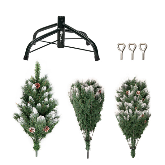 TISEJOY 5ft Artificial Christmas Tree Flocked Snow Trees with 760 PVC Branch Tips, 50 Pine Cones,Solid Metal Legs Perfect for Indoor and Outdoor Holiday Decoration Unlit - Green/White