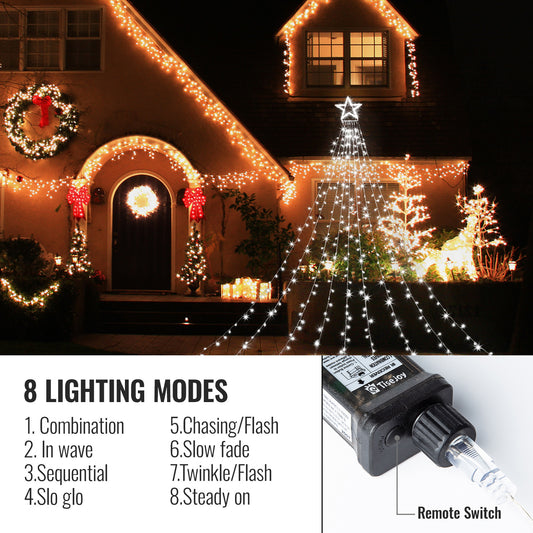 TISEJOY Christmas Decorations Lights 344 LED Star Lights 8 Lighting Modes Outdoor Tree Decorations for Christmas Yard, Garden, New Year, Holiday, Wedding, Party(Cold White)