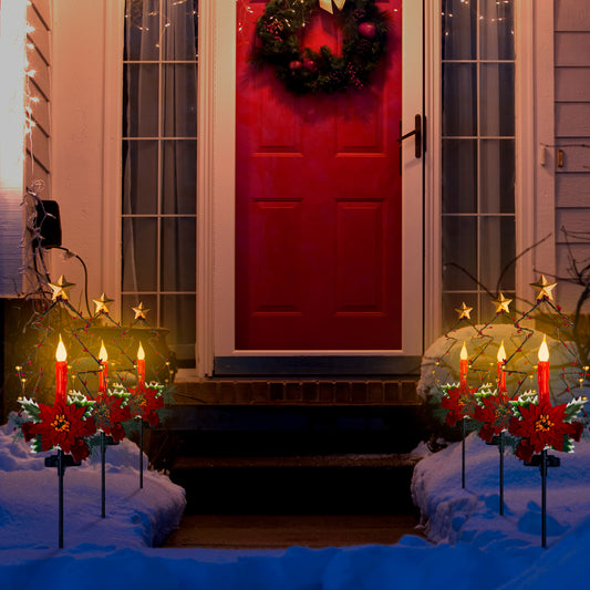 TISEJOY Solar Christmas Decorations Outdoor LED Lights, Waterproof Solar Powered Xmas Candle Pathway Lights, Cemetery Grave Decorations, Festival Ornament Stakes for Garden Lawn Yard Cemetery Set of 2