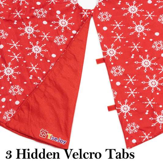 TISEJOY 48'' Christmas Tree Skirt with Snowflakes, Tree Skirt Christmas Decorations Perfect, Traditional Christmas Tree Mat Double Layers for Xmas Party Decor, Red